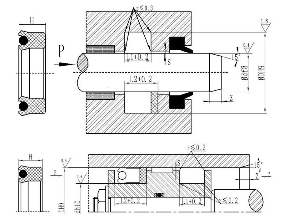 Универзалната заптивка со шипки и отвори од тип BA е симетрична заптивка дизајнирана и за примена на отвори и за вратило. Примарно се користи за запечатување на клипови, клипни шипки, машини за ковање и хидраулична опрема што се користи во мобилната опрема.