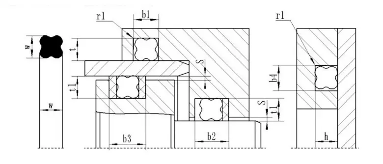 1. Статичко запечатување или возвратно линеарно движење: (1) Запечатување на дупки: Внатрешниот дијаметар на прстенот во форма на starвезда треба да биде компатибилен со жлебот, или помалку од околу 2% од долниот дијаметар на жлебот. Бидејќи пред-компресивната сила генерирана од пред-компресија може ефикасно да го спречи прстенот на заптивката во форма на starвезда од извртување и тркалање. (2) Запечатување на вратилото: Внатрешниот дијаметар на прстенот во форма на starвезда треба да биде еднаков или соодветно поголем од надворешниот дијаметар на вратилото за околу 0,2 ~ 0,3мм, или може да биде околу 1% поголем од надворешниот дијаметар на вратилото. Како резултат, прстенот за печат ќе биде полесен за инсталирање и да има подолг животен век.