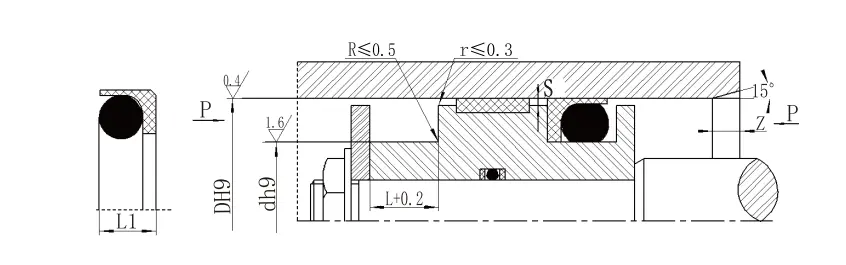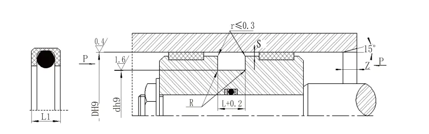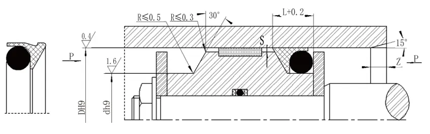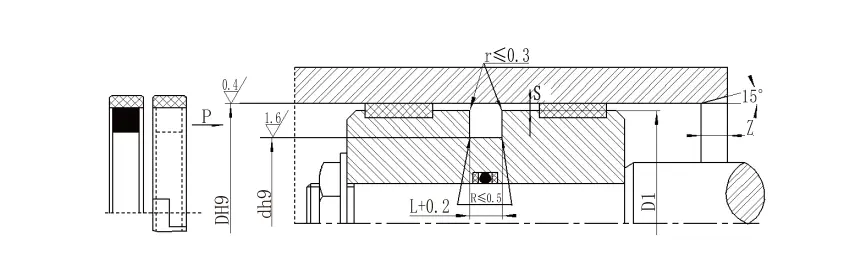 Белешка: 1. За притисоци> 60MPa, областа на коренот на заптивката користи толеранција за појавување на H8/F8, а ултра-високиот заптив на притисок Smax <0,05. 2. За дијаметар на цилиндарот> 30мм, може да се инсталира во затворени жлебови. Ве молиме, консултирајте се со нашата компанија. |