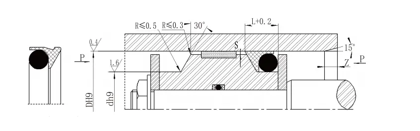 3. За притисок> 40MPa, коренот на заптивката користи толеранција на вклопување H8/F8. |