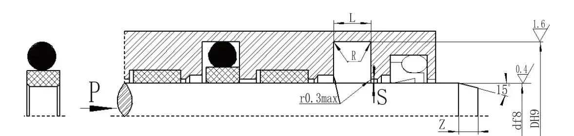 Модел на нарачка: RC11-B-40x55.1x6.3-PTFE3-RO2 Модел: Дијаметар на шипка x Дијаметар на жлеб x Ширина на жлеб PTFE3 (Модифициран тефлонски) Шифра на материјал: R01, R02 - Шифра на материјал за прстени